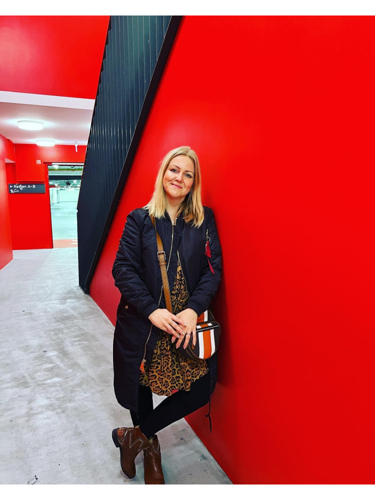 Dámská zimní bunda s kapucí s odepínací kožešinou, prostornými kapsami, nášivkami na rukávech