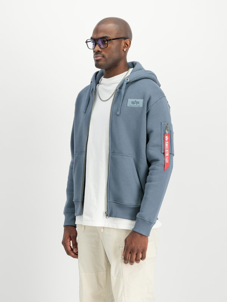 Mikina BACK PRINT ZIP HOODY Alpha Industries, barva DENIM BLUE
