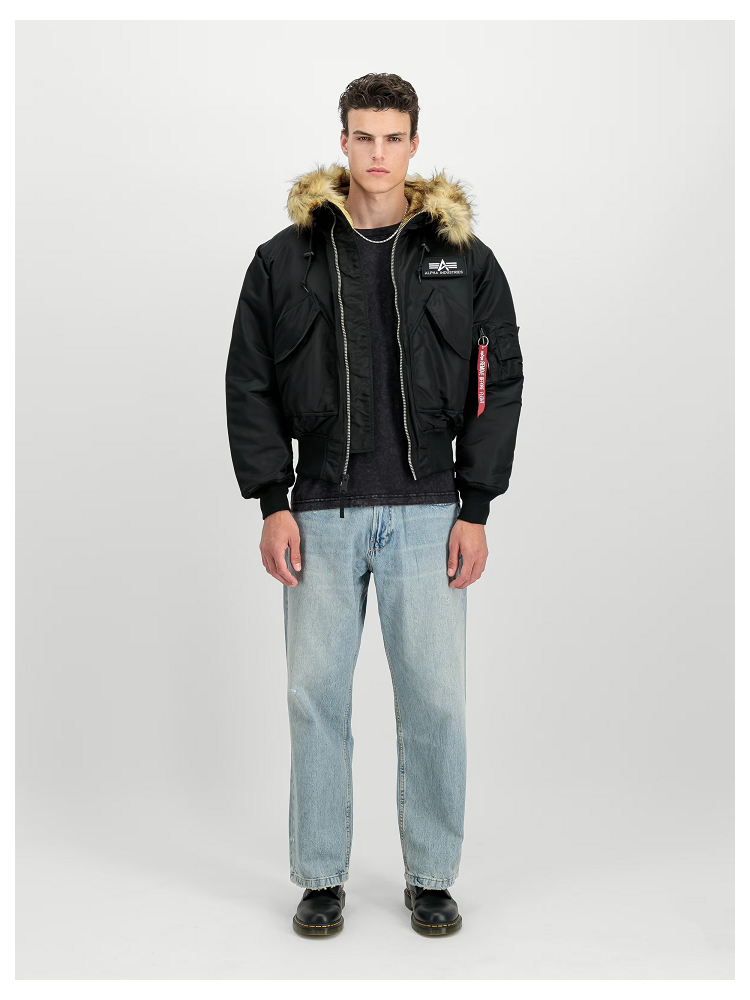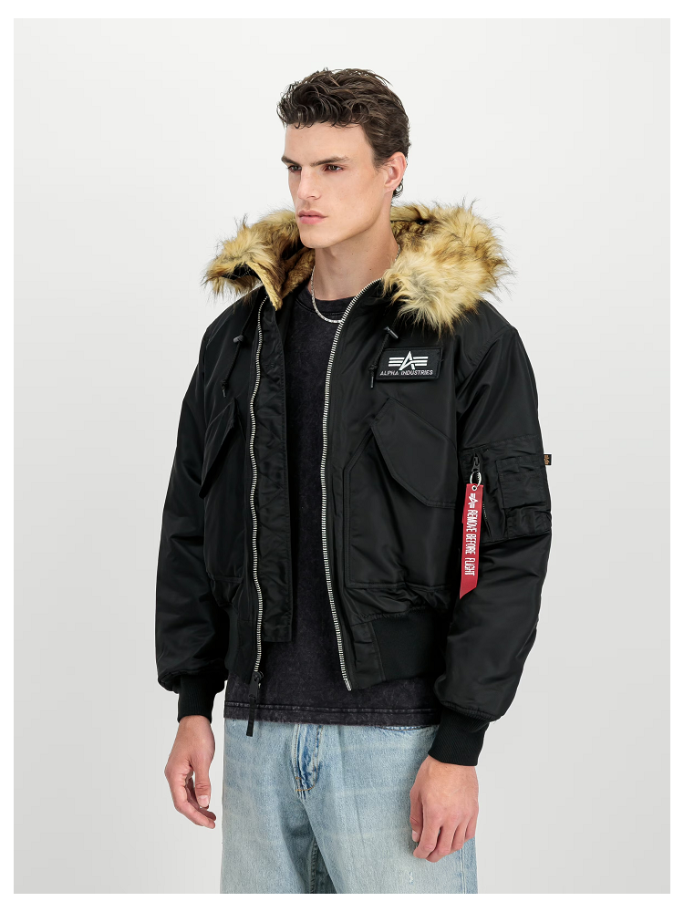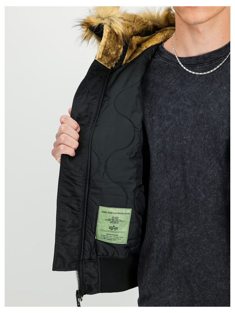 Stylová pánská zimní bunda od světoznámé značky Alpha Industries s oversized střihem, vyrobená z kvalitního leteckého nylonu a vybavená teplou odnímatelnou kapucí s umělou kožešinou.