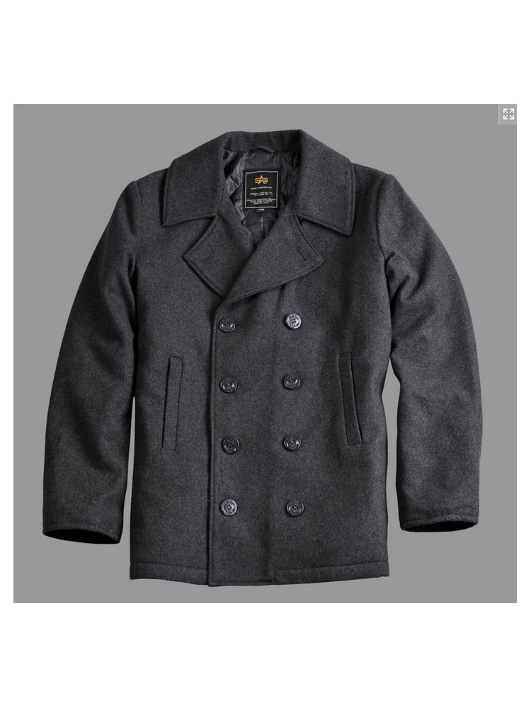 US NÁMOŘNÍ KABÁT PEACOAT Alpha industries DARK GREY / TMAVĚ ŠEDÝ