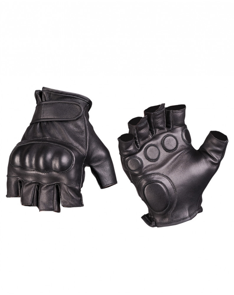 Taktické kožené rukavice bez prstů, černé